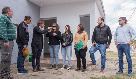 El intendente Juan Manuel Moroni y el secretario de Obras, Servicios y Ambiente Ernesto Borrageros entregaron la vivienda Número 47 del Programa Cooperativo de Construcción Municipal de Viviendas (Pro.Coo.Mu.Vi). Participaron del acto la arquitecta Luján Bruno, encargada de Vivienda, junto a personal del área. La nueva propietaria es Maricel Scheggia. Su hogar (adjudicado en el sorteo de julio de 2024 con el número 50) está en calle Rodríguez Peña 80. Tiene 67 m2 contando los aleros. El intendente destacó el apoyo de las familias que integran el plan y ratificó el compromiso del municipio con los trabajos para que más vecinos accedan a la casa propia y a terrenos. Por su parte, Borrageros destacó que las obras de viviendas, incluidas las del programa “Construyamos Juntos”, vienen a buen ritmo, así como los trabajos en el marco del denominado “hábitat”, vinculados a trabajos de extensión de la red de cloacas, entre otros. Al igual que el resto de los flamantes propietarios, en el marco del compromiso de la actual gestión con el cuidado del ambiente y la forestación urbana, Scheggia recibió un presente del Vivero Municipal “Margarita Malharro de Torres”.