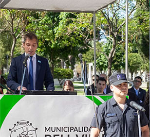El titular del Poder Ejecutivo local hizo un llamado a todos los ciudadanos, desde su rol, en su espacio, con sus capacidades y posibilidades, a hacer su aporte para el progreso de la comunidad. “Quiero agradecerles a las personas que ya no están y que levantaron esta ciudad, a quienes hoy la sostienen y a los más chicos, que son la esperanza de lo que vendrá”, sumó. Como cierre, el intendente llamó a los presentes a seguir trabajando para que Bell Ville siga siendo una ciudad con educación, trabajo y futuro, donde se valora naturaleza, el deporte y la cultura. Cabe resaltar que, a 30 años de la jura de la Carta Orgánica del municipio, el honor de llevar la bandera de la ciudad fue para parte del grupo de convencionales que la redactaron. Portó la insignia local José Pablo Miguel. Lo escoltaron Gustavo Hernández, Héctor Cornaglia, Miguel Aloco y Rubén Pérez. Marchó con ellos Lucas Bondone, en representación de su padre, Carlos Benjamín Bondone (f). La Municipalidad les agradece especialmente su aporte a Diego e Ignacio Maujo. Durante el evento, personal de Defensa Civil, de Tránsito y de otras áreas de la Municipalidad designadas a la organización usaron los equipos de comunicación que ofreció Diego. Se trata de un proyecto de Ignacio, que los tiene a disposición de las instituciones que los necesiten, para préstamo.